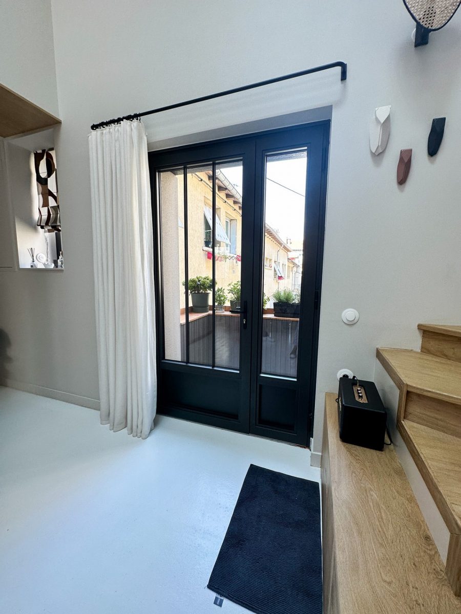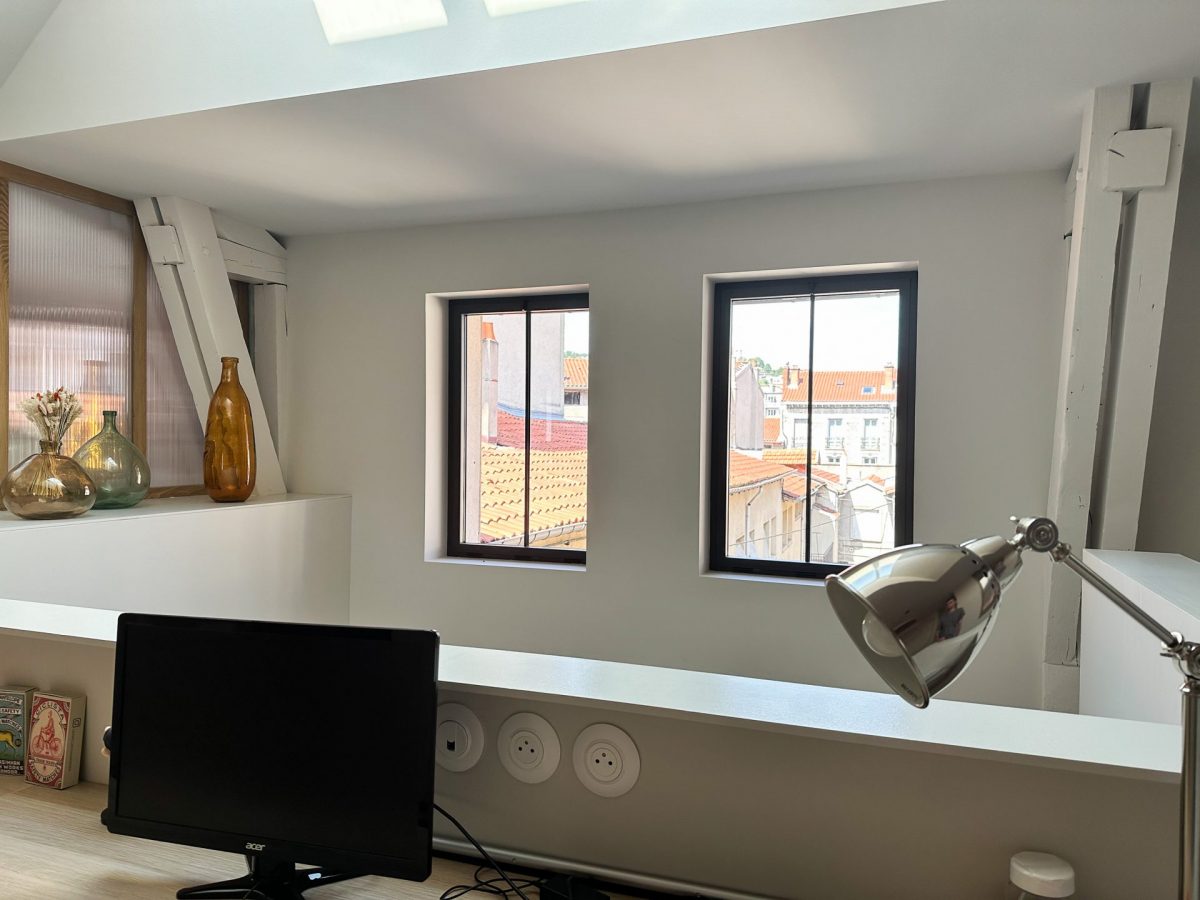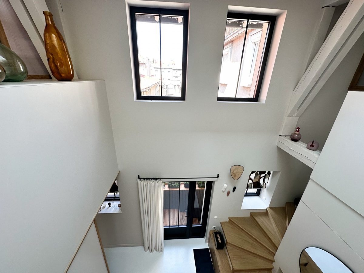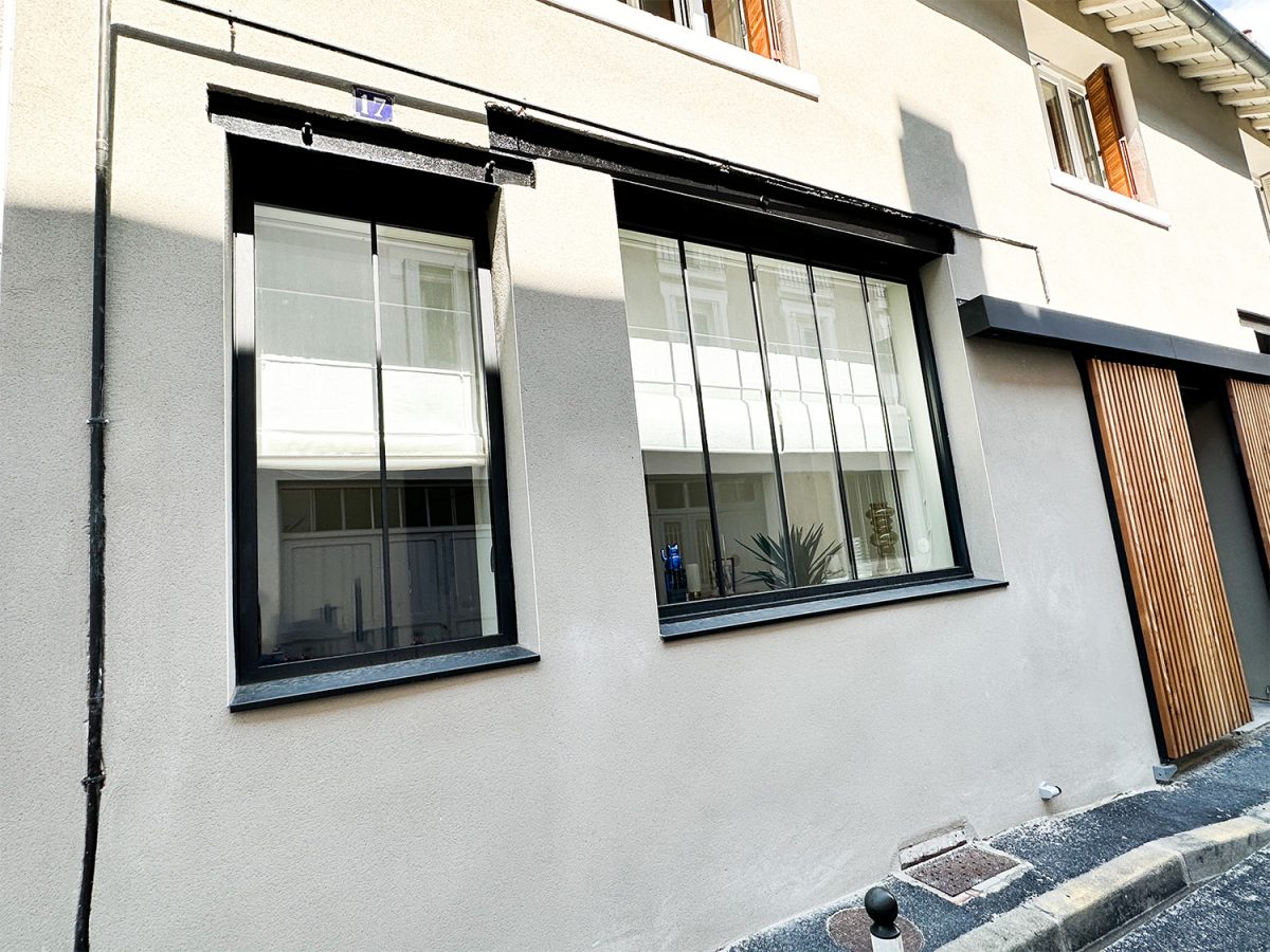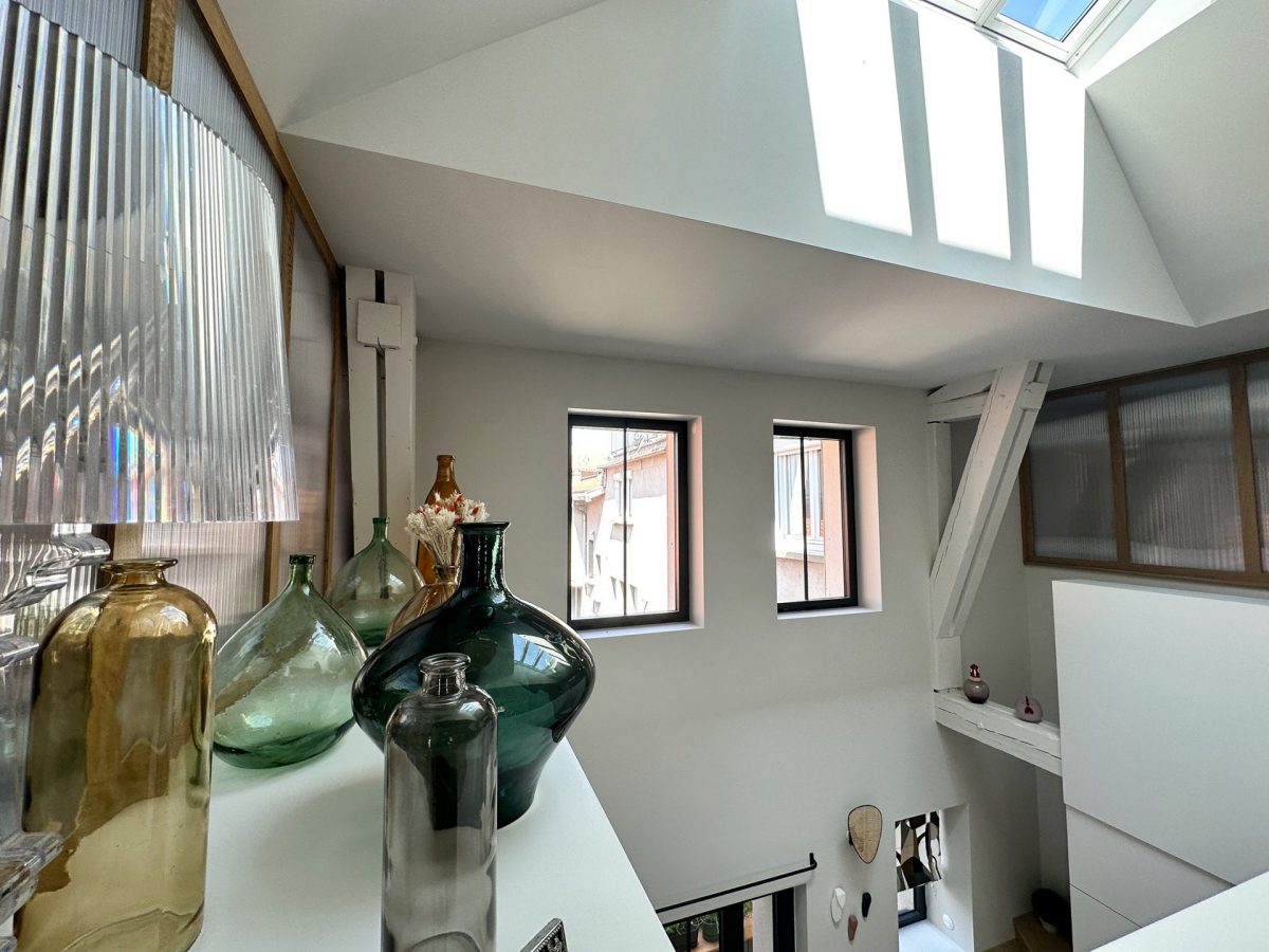 Le style atelier originel est conservé par des verrières, fenêtres et porte-fenêtres aluminium GAUTHIER.