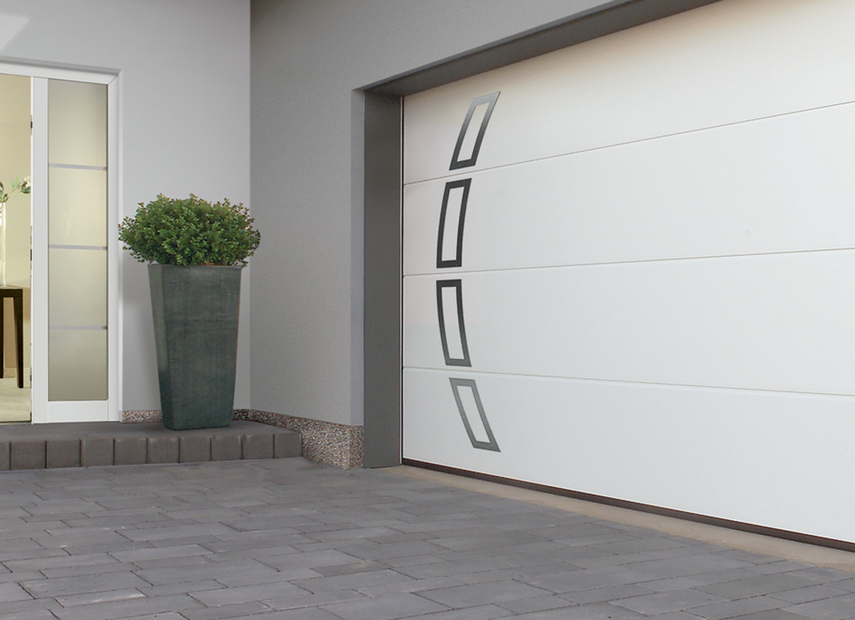 Les portes sectionnelles s’ouvrent à la verticale et se positionnent sans encombrement dans le plafond.